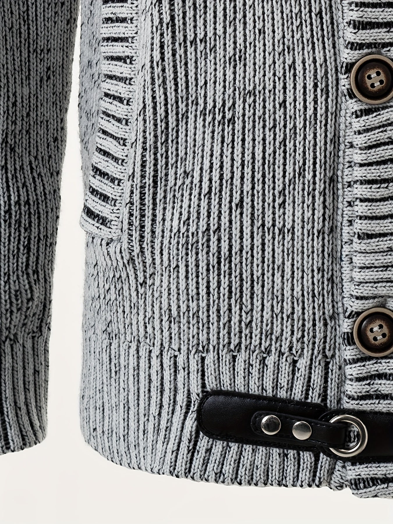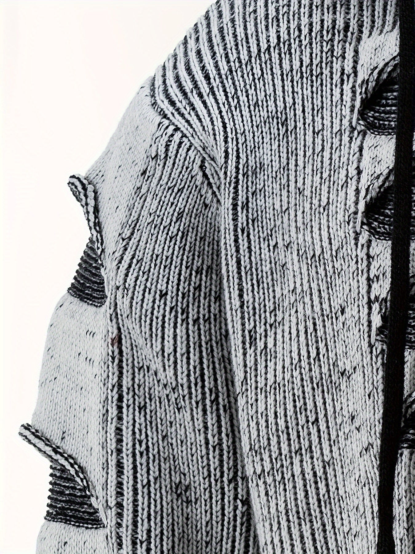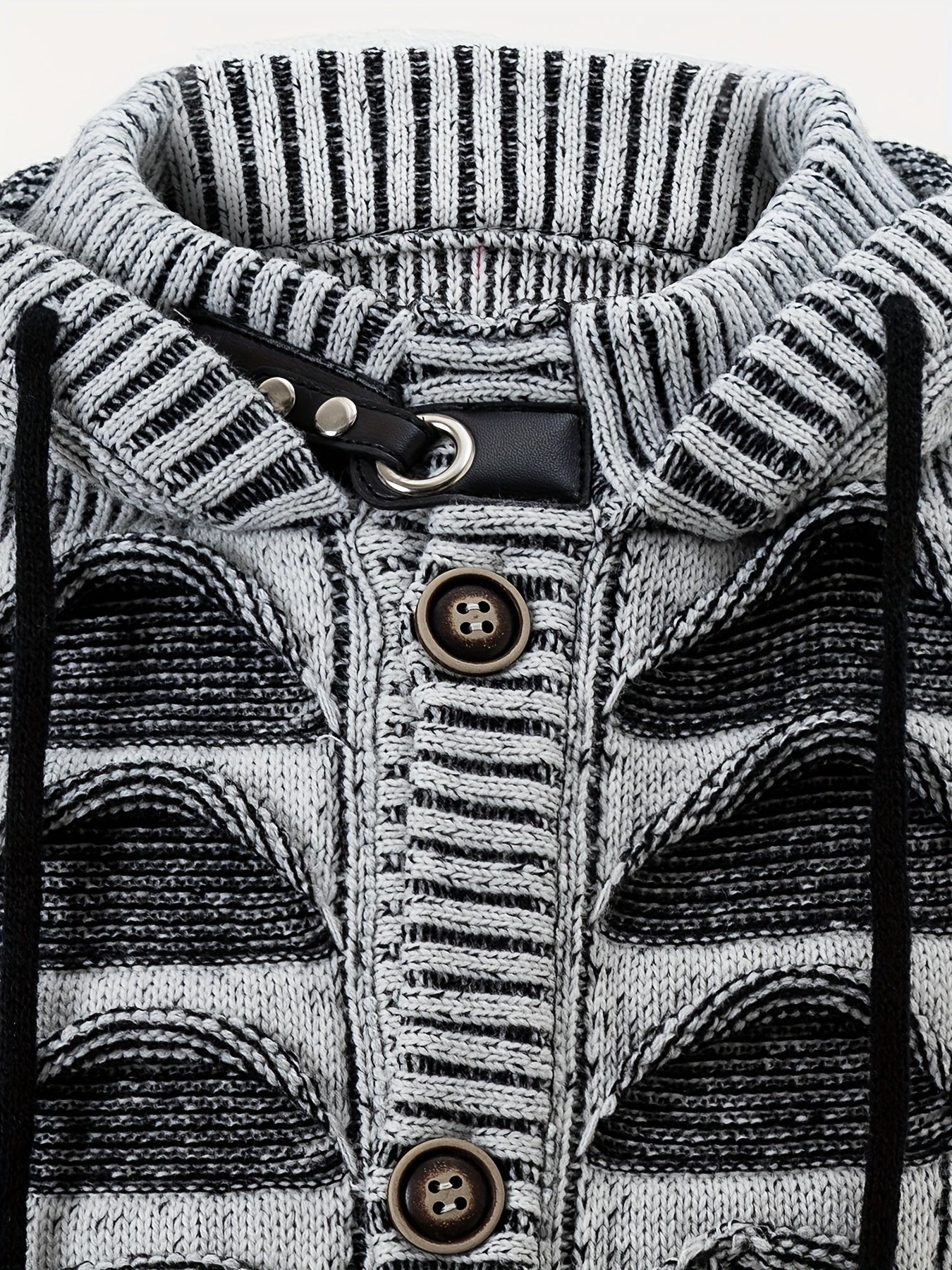 Sudaderas vintage para hombre diseño con capucha y botones, tejido acrílico suave y ligeramente elástico con patrón geométrico. Ajuste regular, ideal para un estilo retro y cómodo.